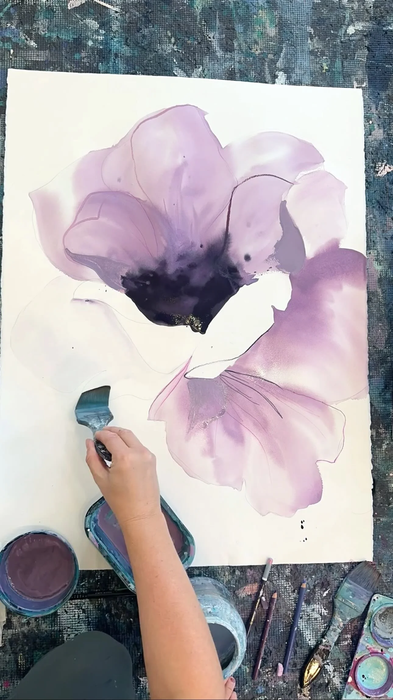 I create mixed media abstract paintings inspired by organic shapes and fluid lines derived from nature. Each piece has a balance of bright and soothing tones to uplift your spirit with color, texture, and movement.