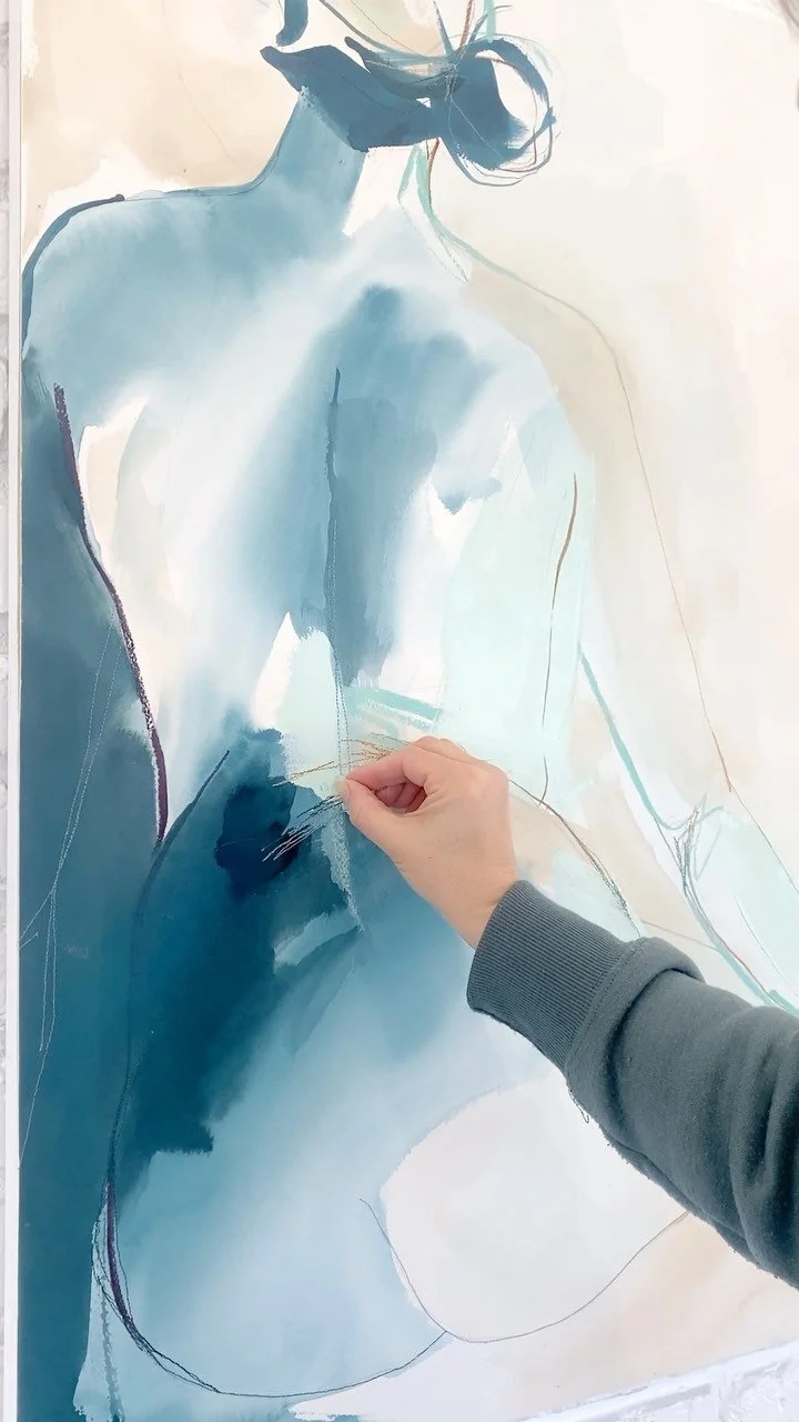 Celebrating every curve and gesture with fluid movement and bold brushstrokes. Allowing delicate lines to tell the complex and beautiful story of a figure. This collection embodies self acceptance and strength. I wanted each painting to be feminine and gentle as well as bold and confident.
