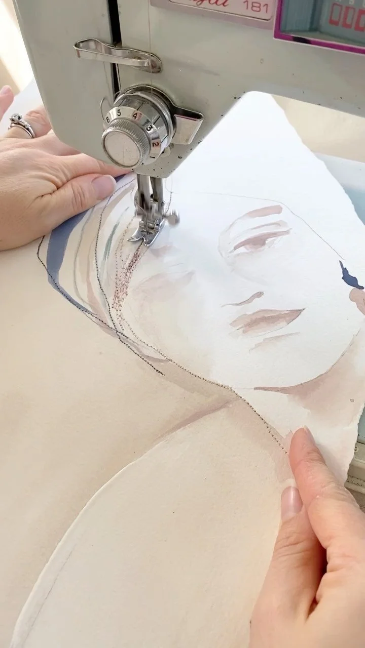 Landscapes make me feel grounded and I am comforted by the ever changing but still familiar horizon line that landscapes offer. Layers of fluid paint mix with yummy thick brush strokes, gestural chalk lines and delicate stitching to create rolling hills and mountains with scattered tiny wildflowers.